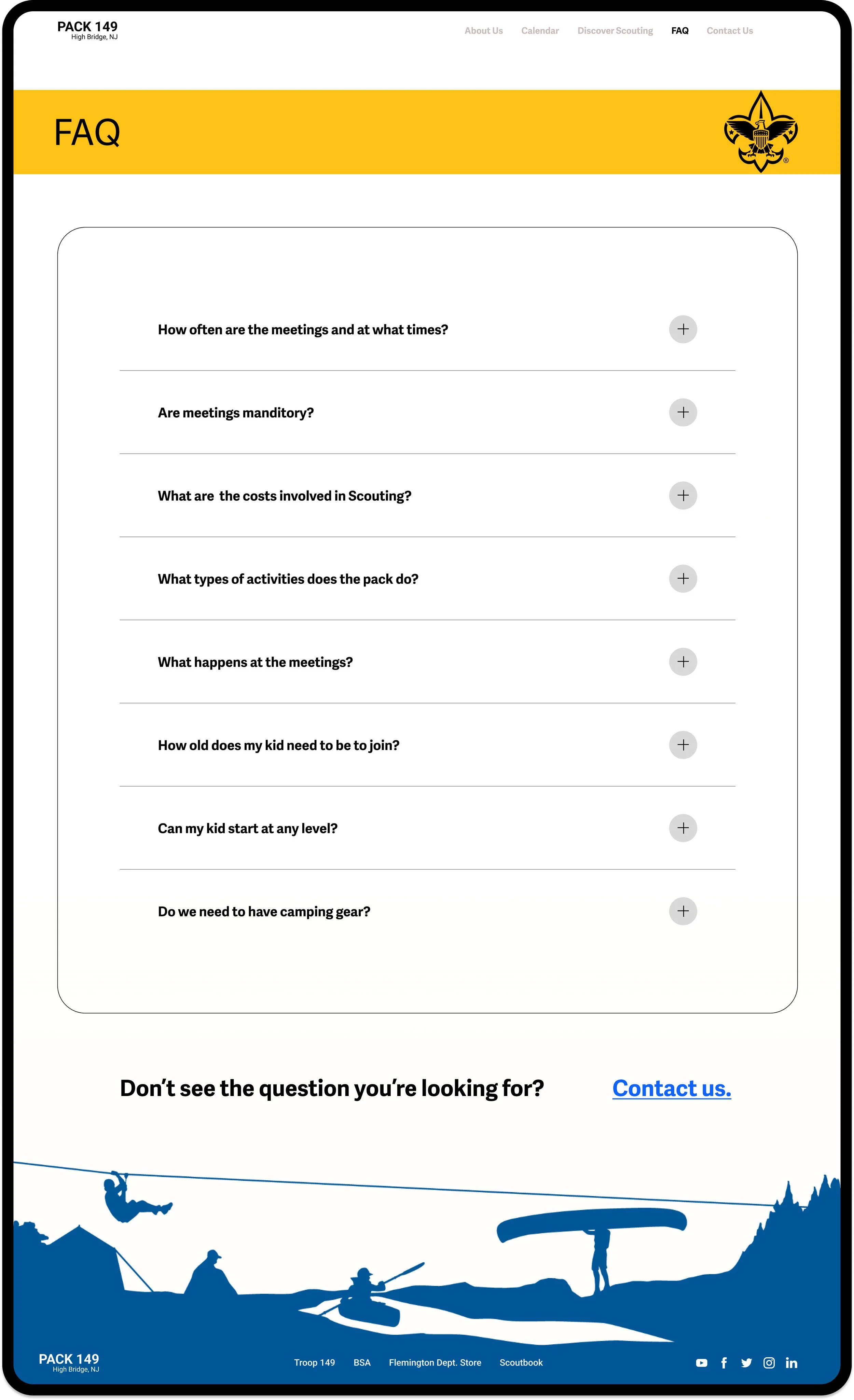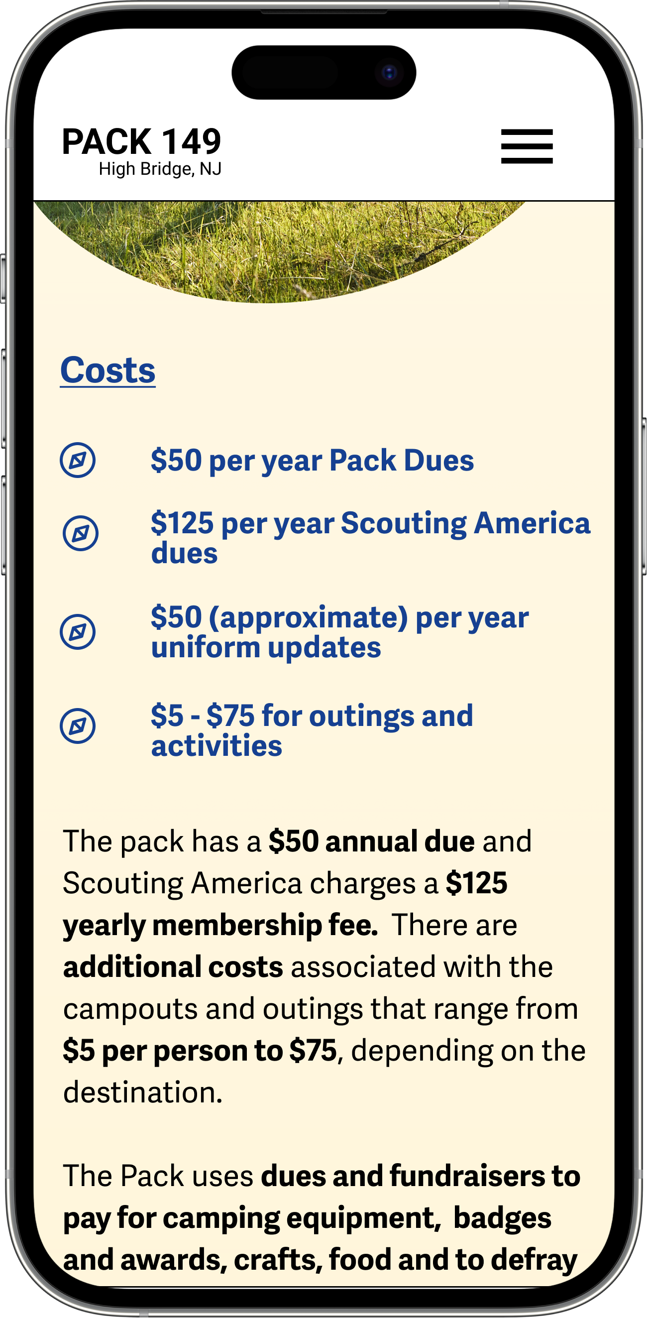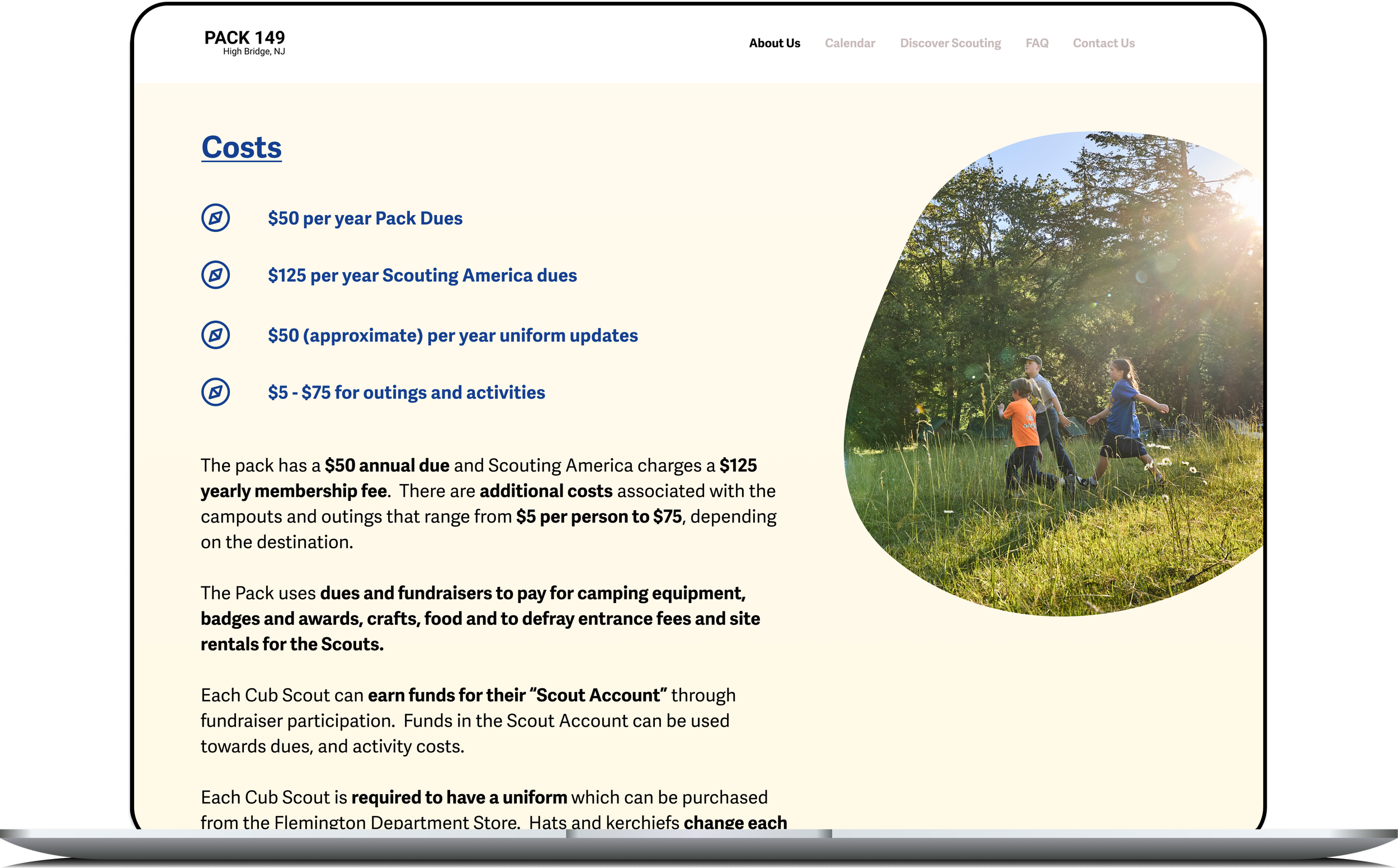 I redesigned Pack 149’s site to be a one-stop hub for scouting info—making it easier for busy families to find event details, understand commitments, and feel the excitement of joining the pack. Because the real adventure should be in the woods, not on the homepage.